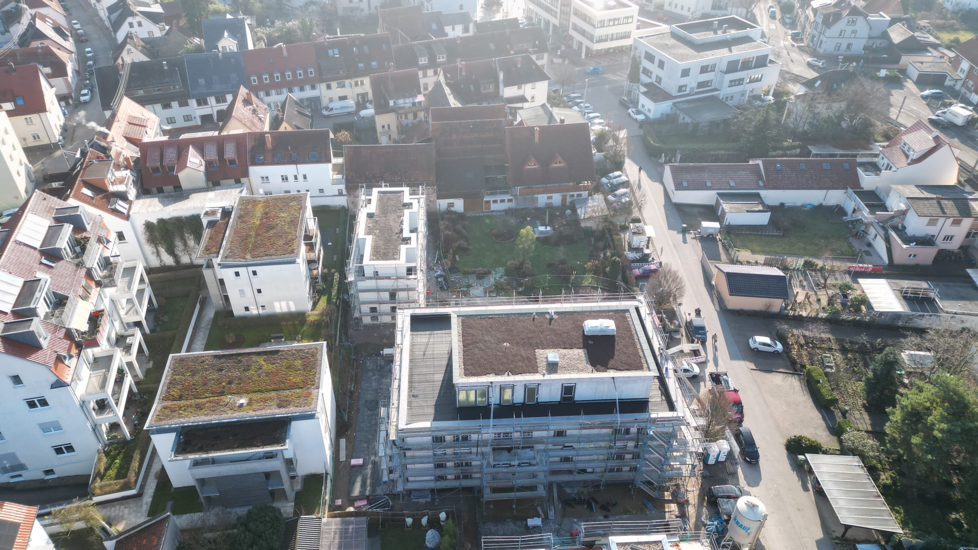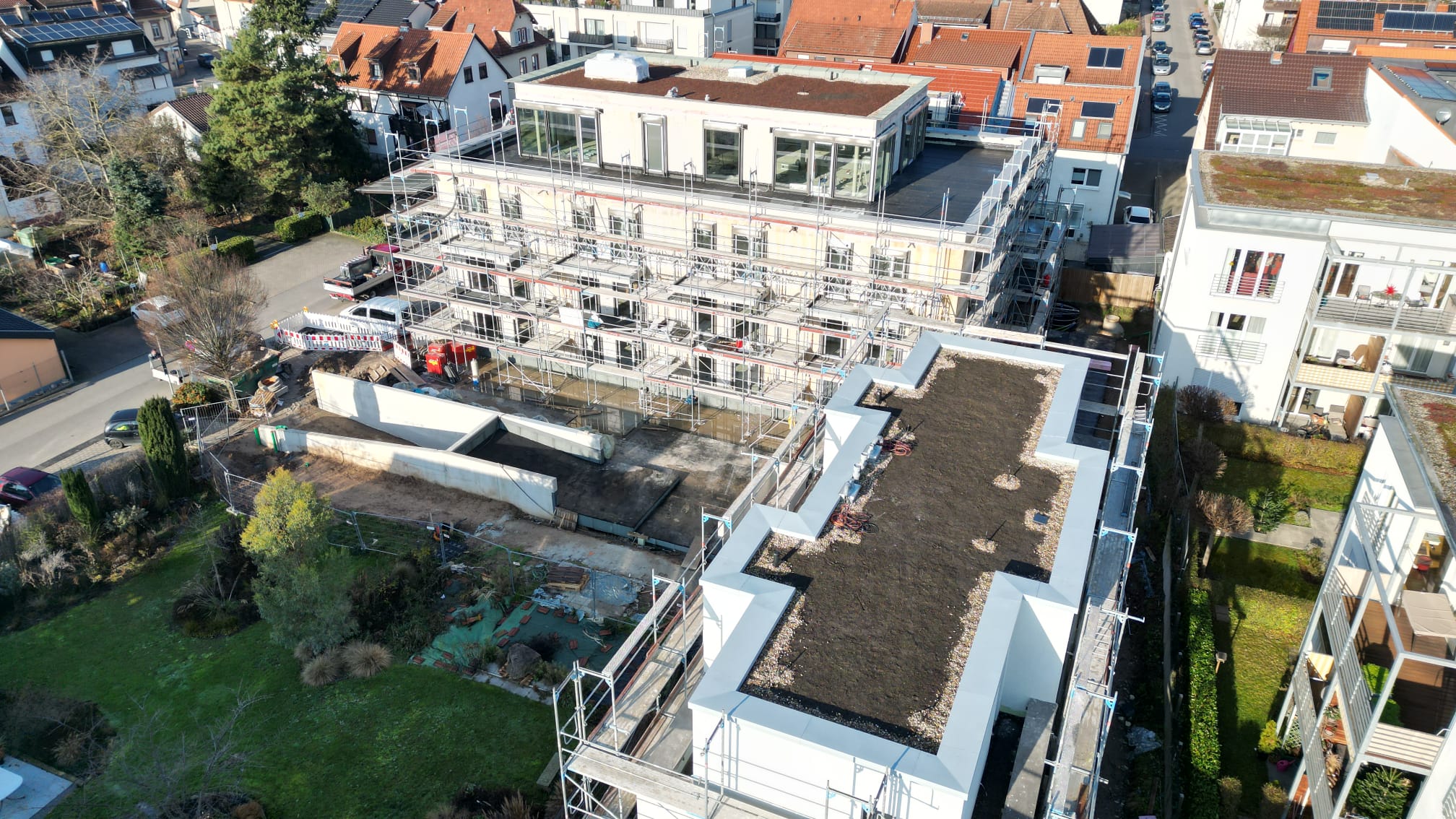 Wohngebäude mit Tiefgarage und Doppelhaushälften